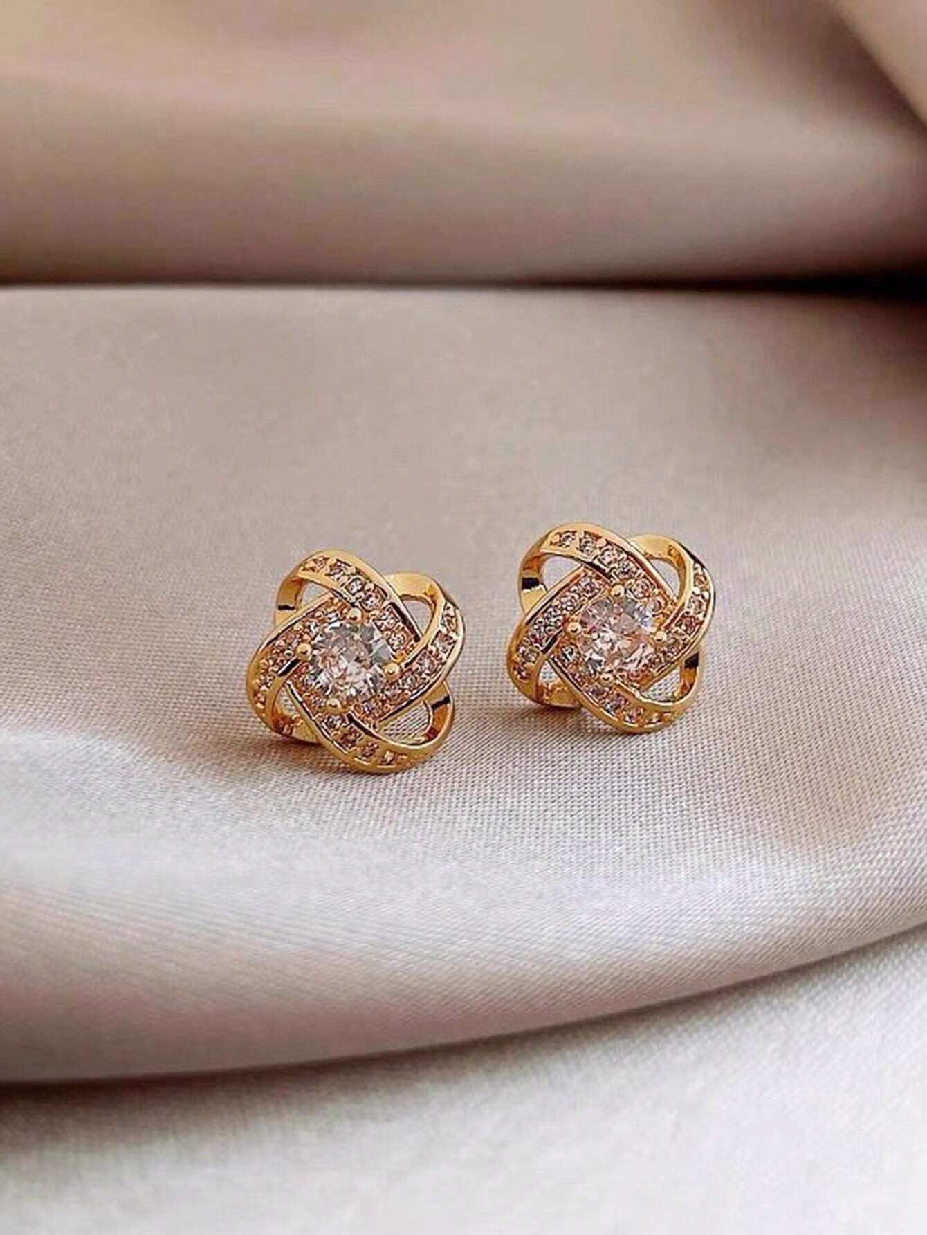 1pair High-end & Unique Design Clover Shaped Stud Earrings For Women