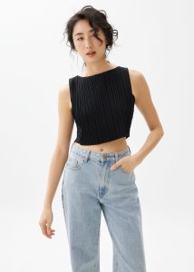 Equal parts elegant and practical, like your stylish mama who knows it all. We designed this boat neck crop top to look effortlessly feminine in her pleats. Plus, we finished her off with an elasticated back waist because we wanted you to have extra room for dessert.