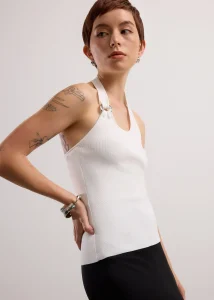 Sometimes, the smallest details can make the biggest impact. This halter top comes with an eye-catching buckle, so you skip the jewellery without feeling like you’ve under-accessorised. Made with stretchy knit, she fits like a dream and stays comfy from brunch to late-night plans. Best of all, she’s a versatile queen—wear her with a skirt for sunny weekend walks, or pair her with sleek pants and a jacket for your next cool-weather uniform.