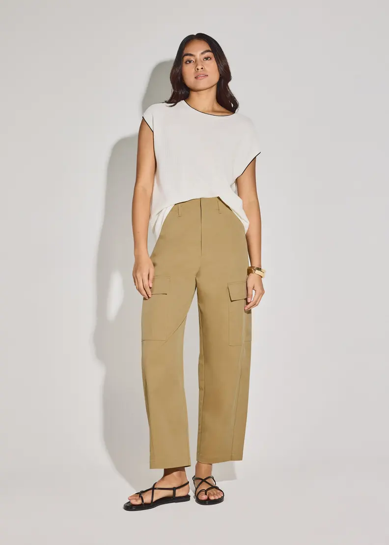 Whatever your weekend turns into, this pair fits right in. These cargo pants are designed in a cocoon silhouette for an easy modern fit. The lyocell fabric keeps it light and breezy, and the mid waist rise assures all-day comfort. Cargo-style front pockets hold your mini essentials, and back pockets carry some extra stuff, too.
