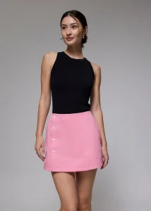 Made with structured cotton for that perfect balance of comfort and shape, this skort is high-waisted to keep things flattering, with a breezy A-line cut for movement. Designed with side pockets, a back zip, and button details to keep your outfit feeling fresh, no matter how busy your day gets.