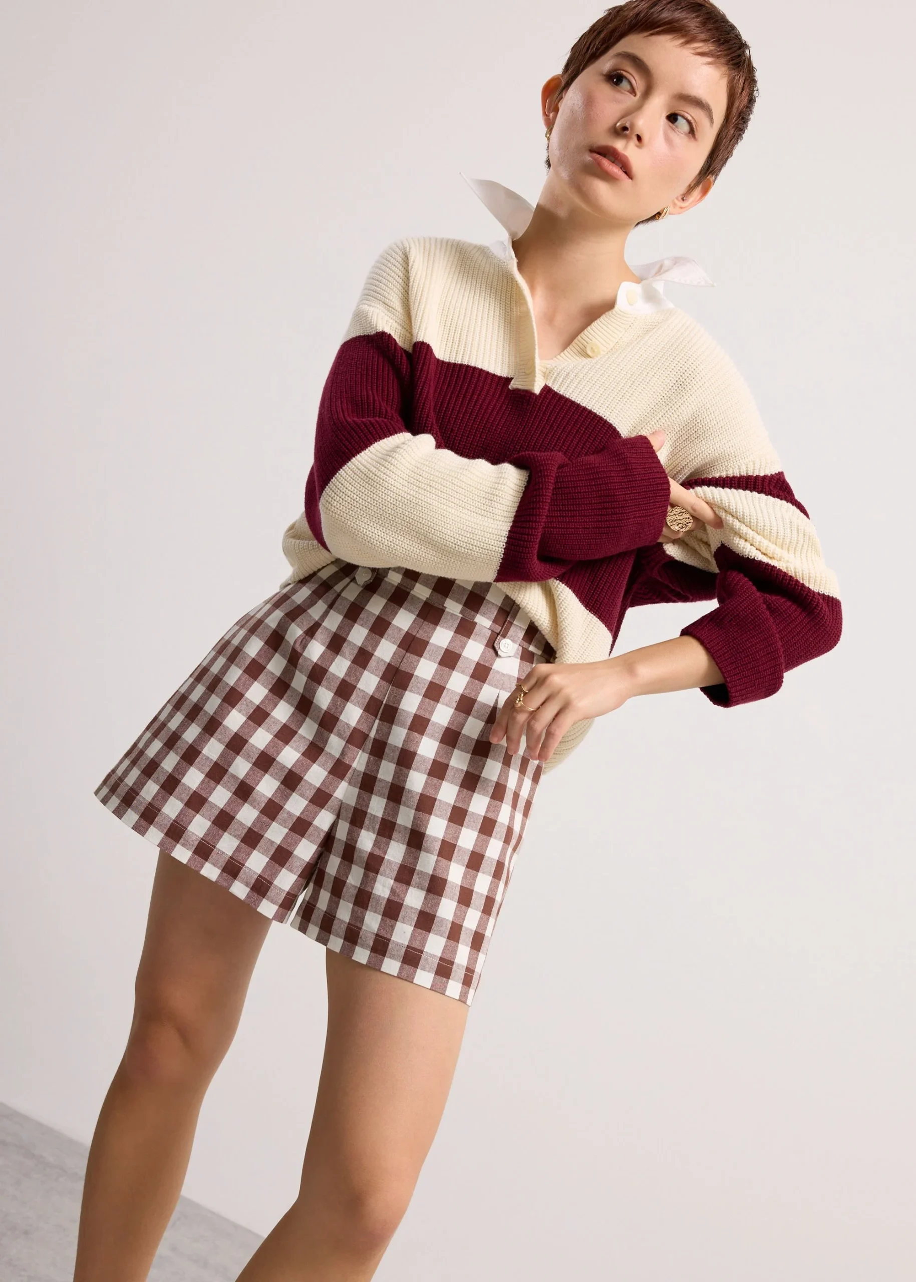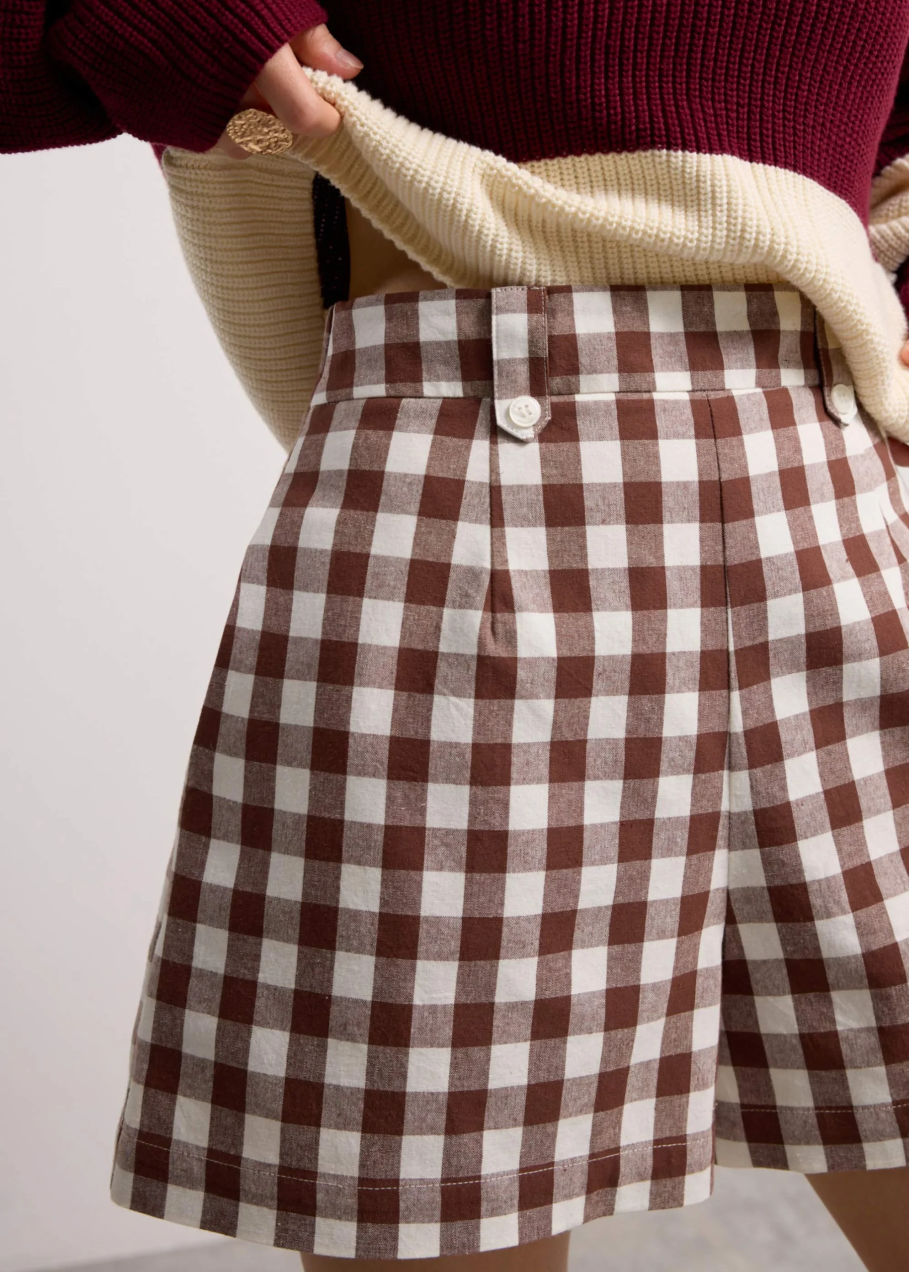 Just in case you needed pair for picking the best strawberries at the farmer’s market. These high-waist A-line shorts are cut from cotton in bold gingham, making them lightweight, breathable, and weekend-approved. The structured silhouette flatters without feeling restrictive, while functional side pockets keep your essentials close (phone, keys, and post-brunch snacks).