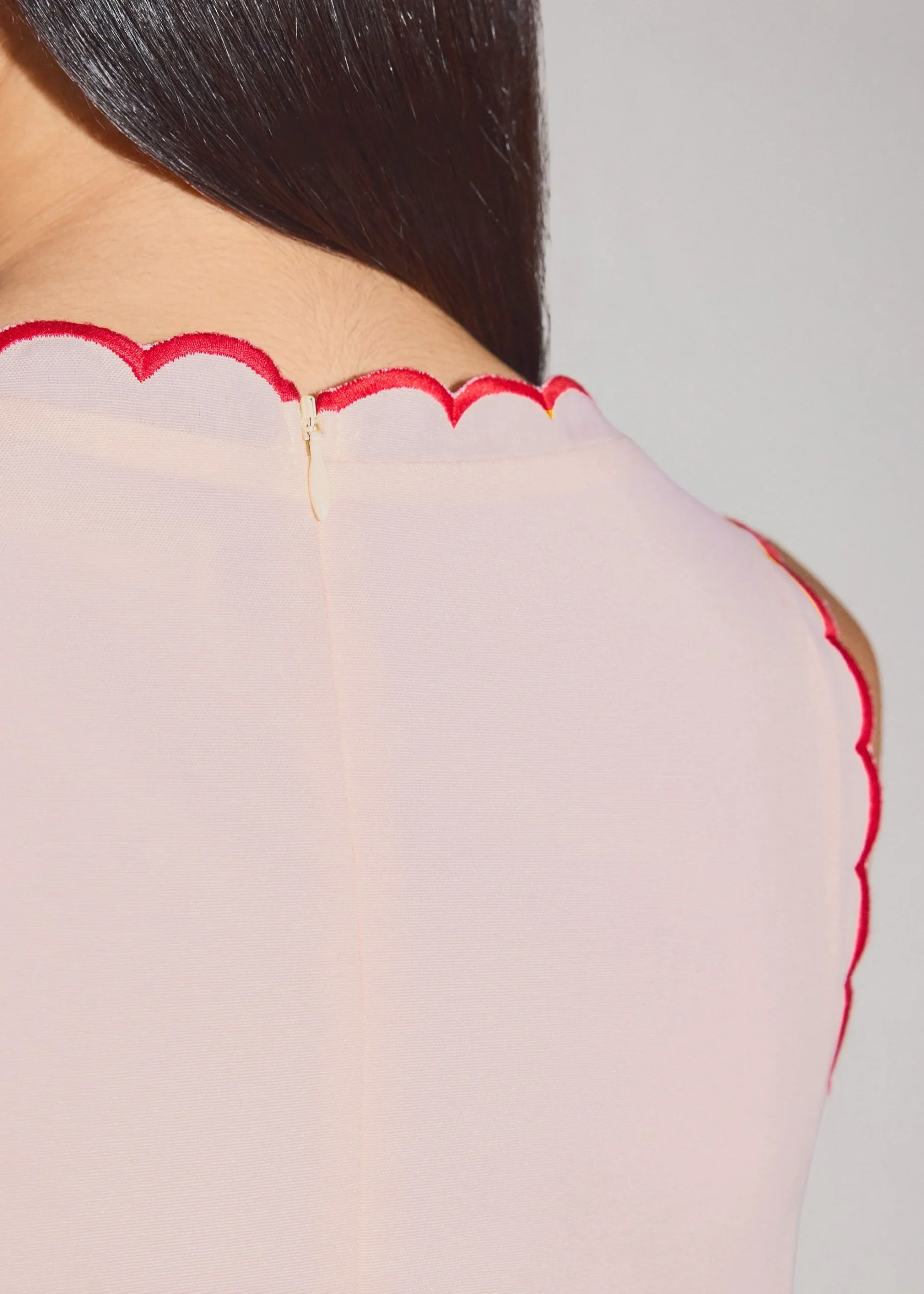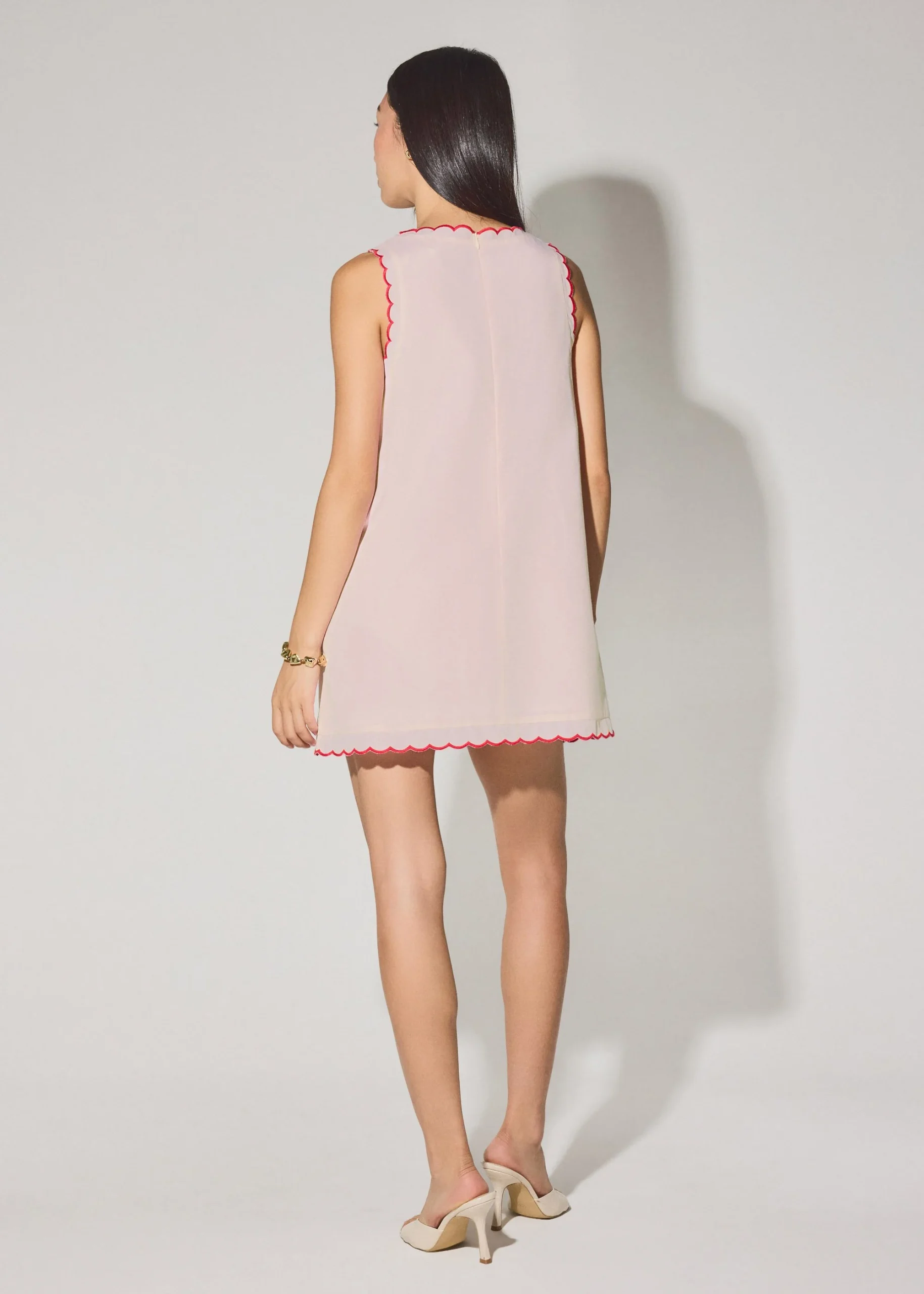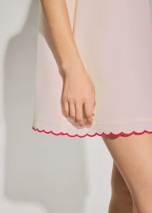 Put this on and get on with your day. Cut from breathable cotton in an easy shift silhouette, this dress leaves room for your body to move, sit, and snack without second thoughts. The boat neckline frames the collarbones, and the scallop edge is a thoughtful romantic detail. Finished with functional side pockets and a back zipper.