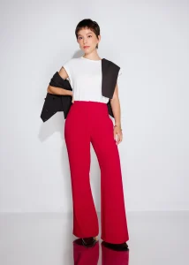 This version is designed in crease-ease crepe to keeps its structure as you move through your day. The super high waist cinches comfortably, while the kick flare silhouette creates the leg-lengthening effect petite shoppers know and love. Finished with functional side pockets for hands-free style and a front fly for easy slip-on.