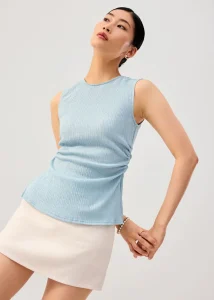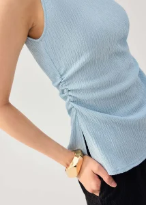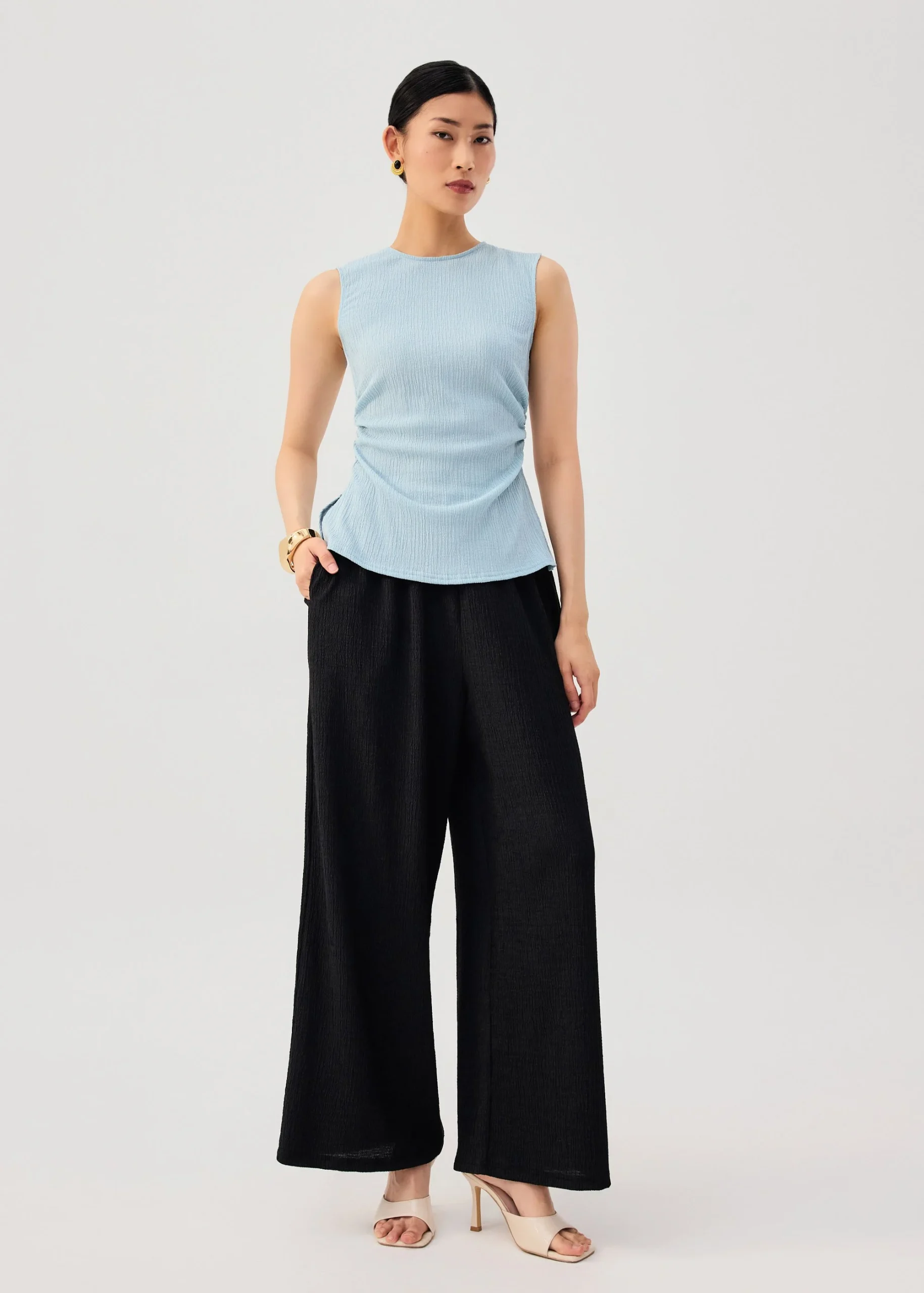 Settle into your New Year routine with this no-nonsense top. Ruching details at the side define the waist of this crinkled jersey number, adding a touch of drama to its sleek cut.