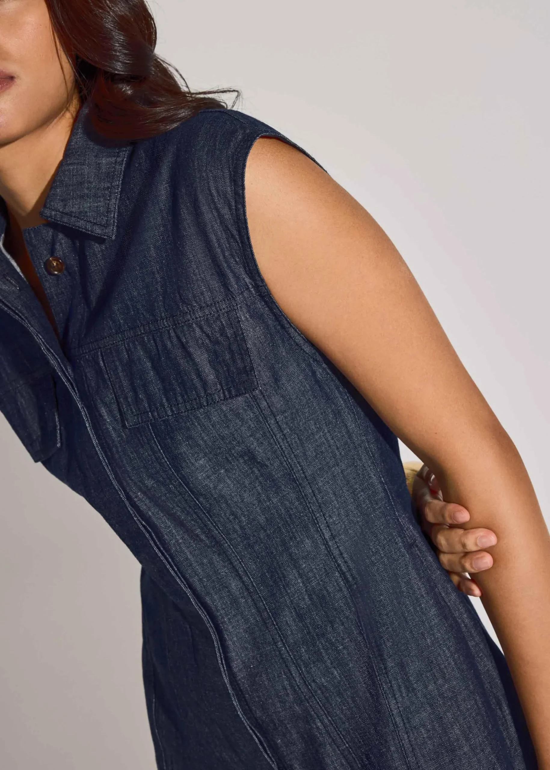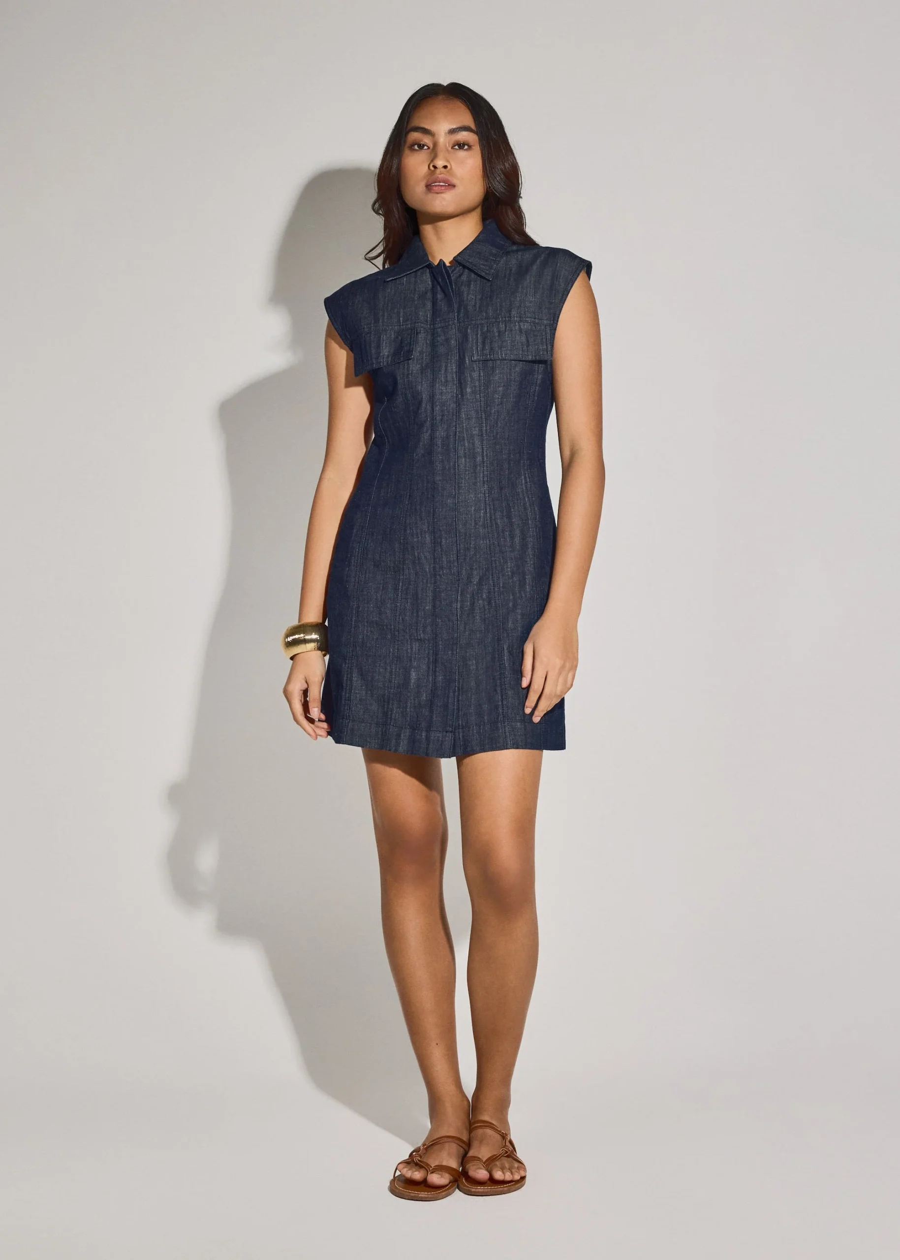 Who says denim can’t look polished? This mini dress features a classic A-line cut with subtle panelling that defines the silhouette without holding you back. The sharp collar and front patch pocket make this dress feel put-together—even if you’re just out for your regular matcha runs. Plus, it comes with functional side pockets for holding small essentials. Finished with a hidden button placket opening to keep things neat.