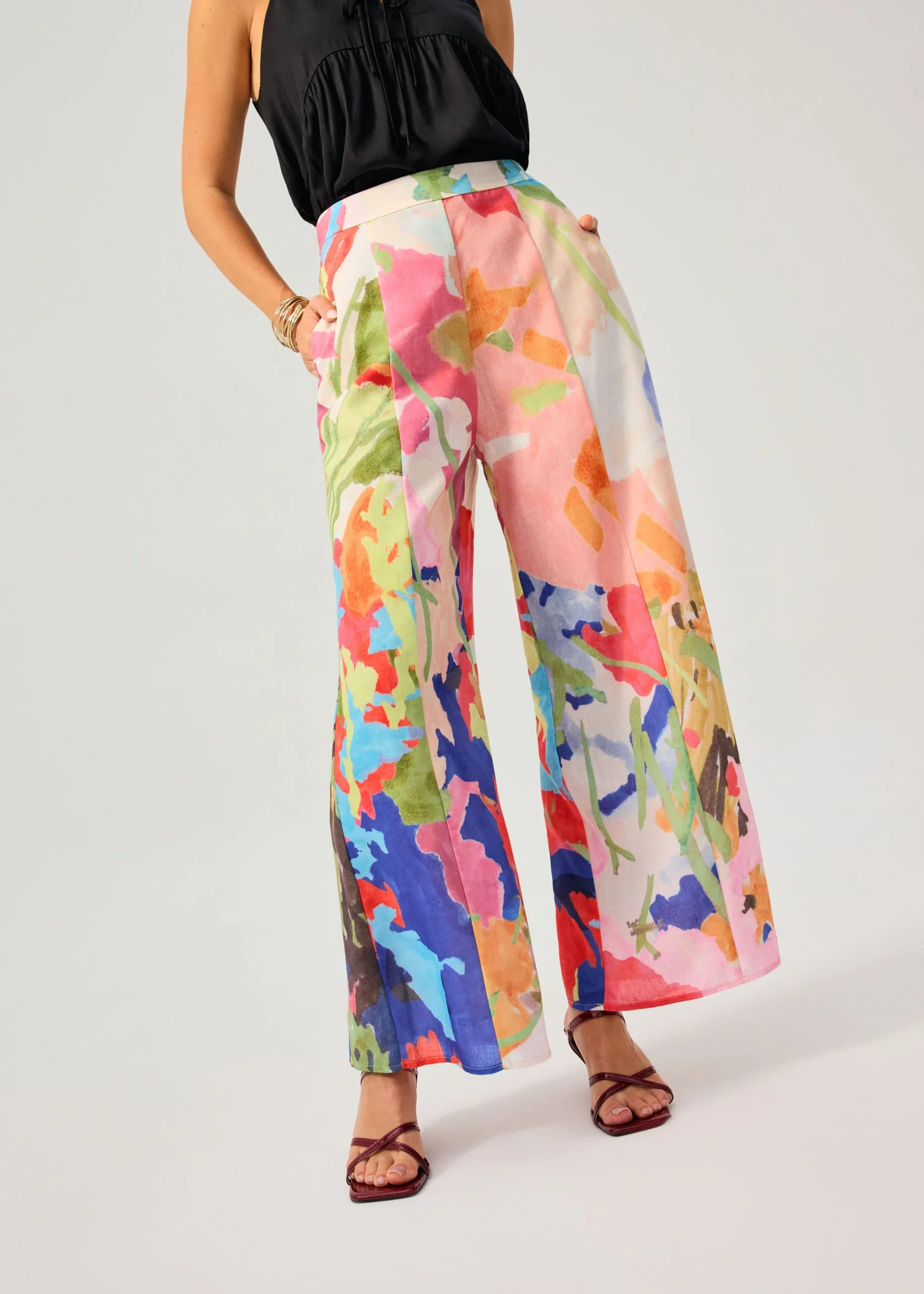 Make a bold statement with every stride in these pants. Panels of our abstract floral print come together in a wide-leg cut, creating a flattering and leg-lengthening silhouette. Her elasticated waistband creates a fit that stays comfy and looks sleek throughout every event. Pair her with matching tones or go print-on-print—her mid-waist rise will suit a wide range of tops. Finished with functional side pockets and closes with a side zipper.