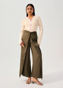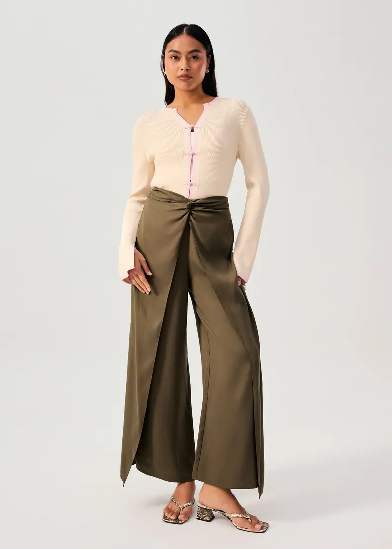 Your next favourite pants—with a twist (literally). Features a front twist with layers, creating a faux wrap effect with every step. With a wide leg silhouette crafted from breathable lyocell, you’re sure to look as cool as you feel wherever you go. Comes with a back zipper closure.