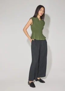 For days full of plans—including ones you forgot. This top features the no-nonsense polish of a polo shirt, balanced with a peplum silhouette and cap sleeves for that feminine flair. The stretchy knit gives your body room to just be without life getting in the way. Finished with front buttons for easy wear.