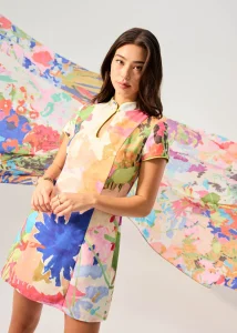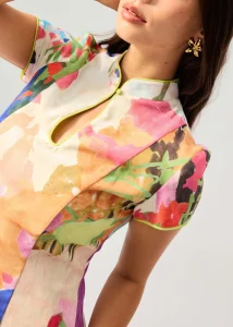 Made for women with busy schedules and full Instagram feeds. Inspired by the traditional cheongsam, this piece features a mini length and a more casual shift silhouette. Combined with the vibrant colours and bold shapes in our custom print, this dress is a guaranteed conversation starter at reunions, meetups, or even the line at the store. Comes with funcitonal side pockets for your small essentials. Finished with full lining and a back zipper.