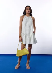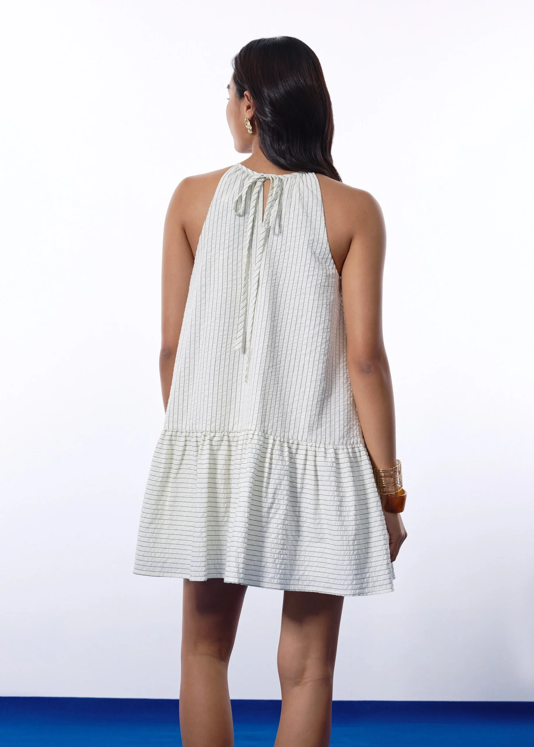 Be the first to review “Pinstripe Seersucker Halter Trapeze Mini Dress”