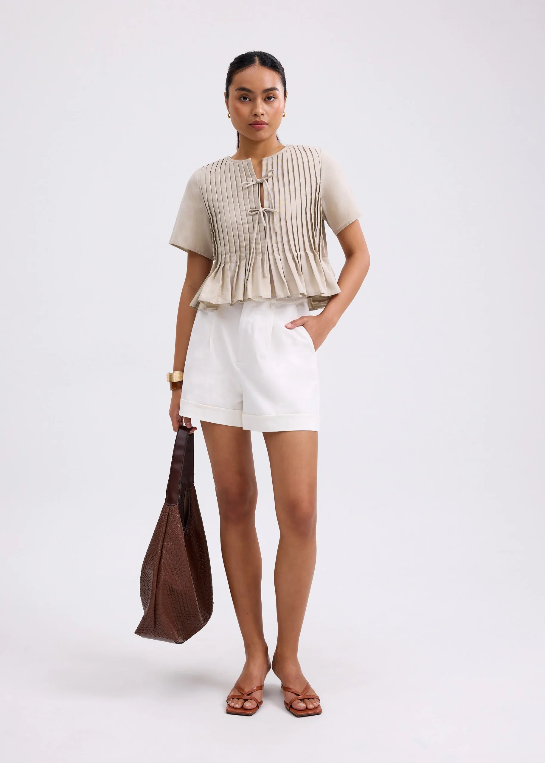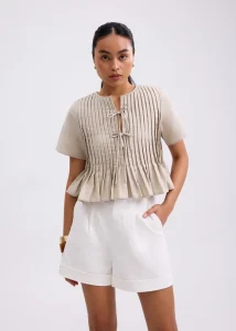 She has the same pintuck details and ribbon-tied notch neckline are, but this version in breathable, crease-ease Oxford sports a more mature silhouette for work and weekend plans. Go ahead and dress up with this top even when you’re feeling bloated—we promise, there’s enough room for you.