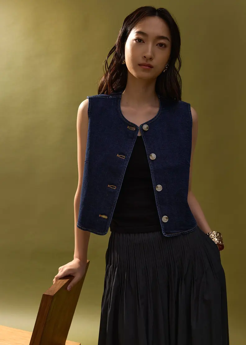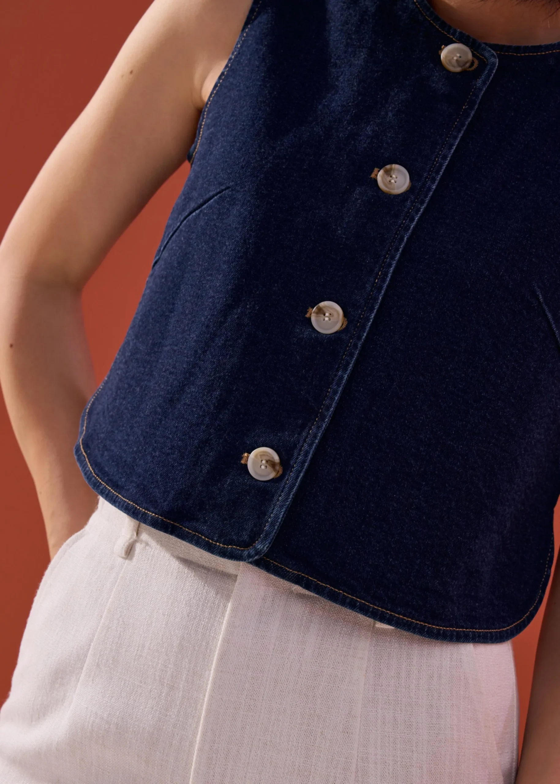 Be the first to review “Relaxed Denim Round Neck Button Down Vest Top”