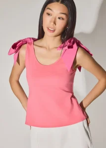 You’re off the clock, your phone’s on silent (mostly), and the plan is simply to enjoy the day as it unfolds. This is the top is for that moment. Cut in a fitted silhouette, this breathable piece gently holds you in without ever feeling tight. Designed with a scoop neckline and ribbon tie accents on the shoulder for a delighfully charming touch.