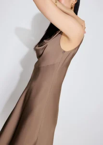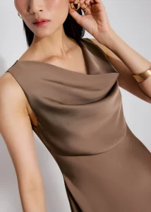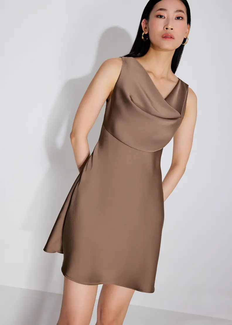 For nights when you want something silky, charming, and intentional. Cut in a soft satin with a gentle cowl neckline, this mini dress has that easy drape that always looks good. The A-line shape skims instead of clings, so can move without any fuss. Sleeveless, fully lined, and finished with a back zip so getting ready takes approximately 15 seconds.