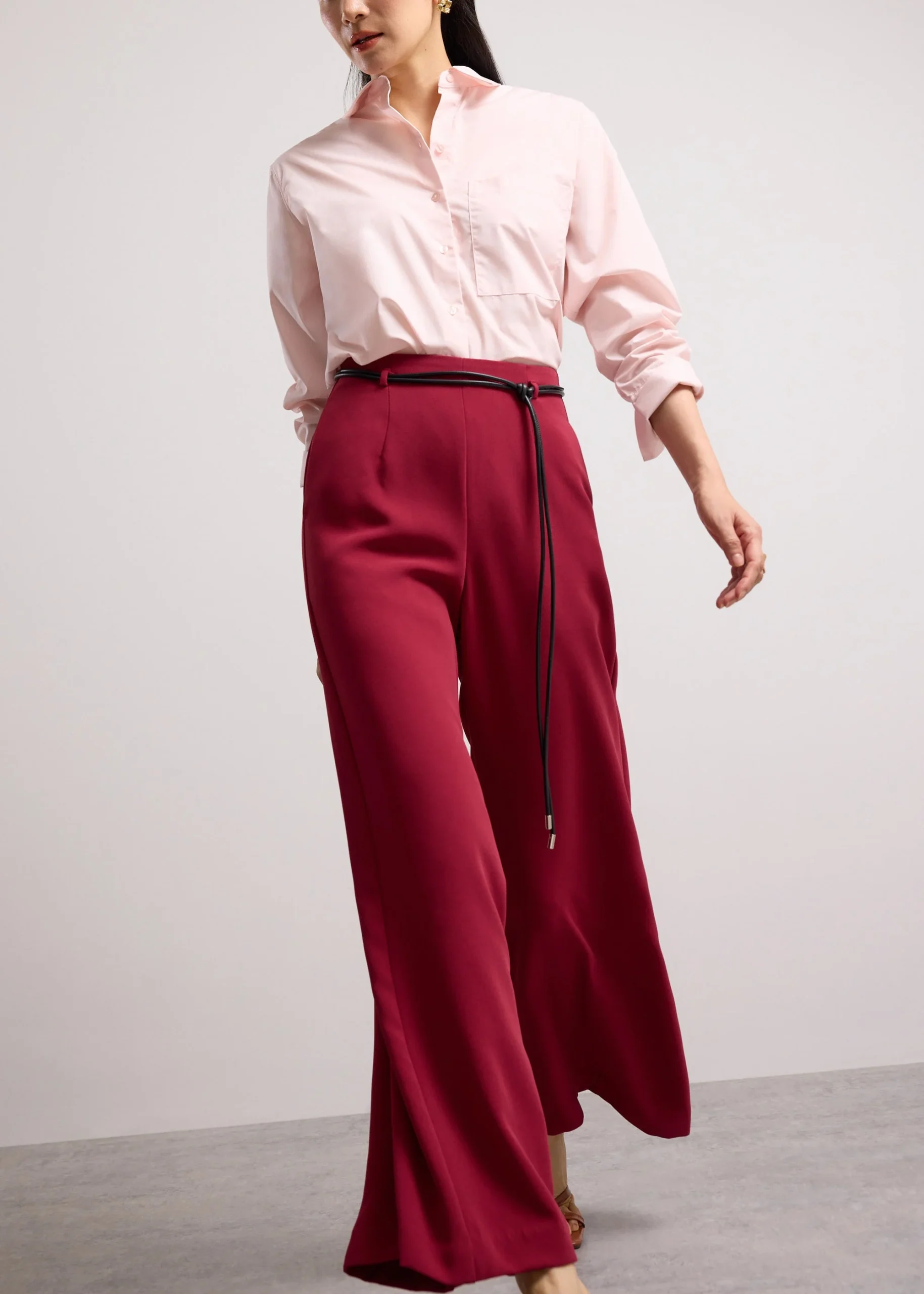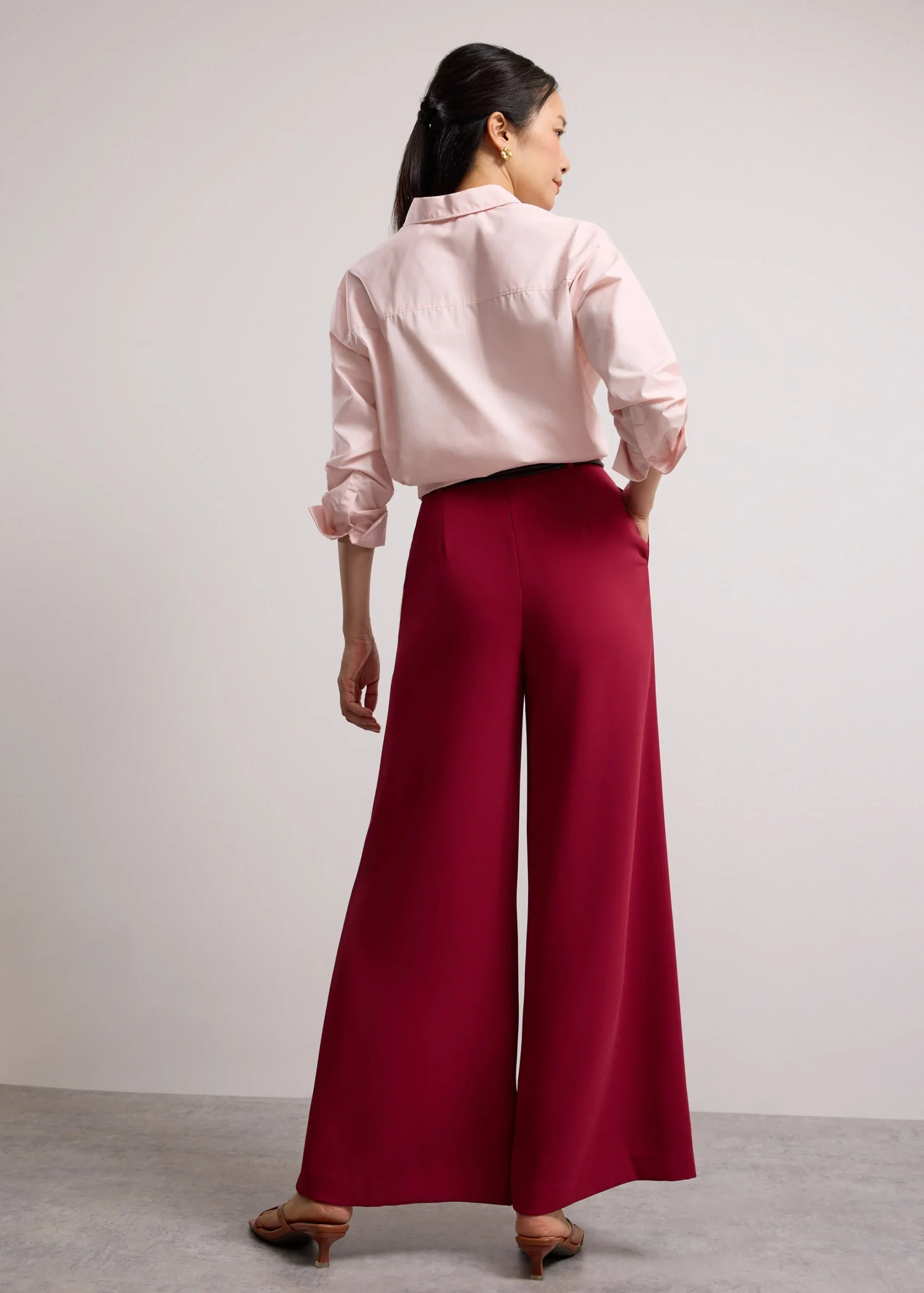 Life’s complicated enough, so Jules gets you ready before your lipstick’s even on. Tailored from lightweight crepe, these palazzo pants are breezy, effortless, and give your height an instant boost. Plus, she comes with a matching belt that gives you the option to cinch your waist for polish. Wear Jules with your best tee or favourite blouse—dress her up with a blazer for the office, or down with sneakers for the mall. Finished with a concealed back zipper and functional pockets.