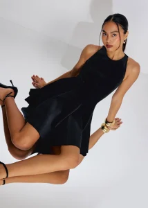 Life will always be busy, so make it a point to look good while doing it all. Bring soft texture with a bit of sass to your 9-to-5 with this velvet mini dress. Cut in a fit and flare silhouette with a round neckline, she strikes the sweet spot between playful and polished. The sleeveless lets you move with ease, while the back zipper keeps the finish sleek. Whether paired with a tailored blazer for work or heels for dinner, this dress makes looking put-together feel as easy as slipping it on.